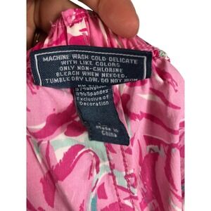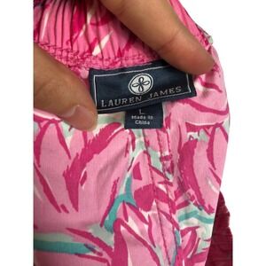 Lauren James Pink Floral Tulip Swim Pocket Water Nylon Athletic Gym Shorts Large
