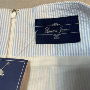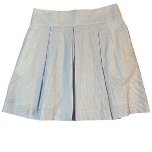 Lauren James Pleated Seersucker Skirt Size Large Mini USA Pockets Preppy NEW