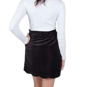 Lauren James Size Medium Black Velvet Mini Skirt Scalloped Hem Holiday Festive