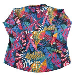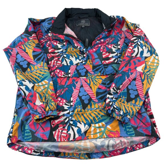 Lauren James Womens Medium Multicolor Tropical Print Pullover Jacket Windbreaker