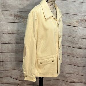 Lauren Jeans Co Corduroy Blazer Leather Elbow Patches Size 1X Cream Pockets