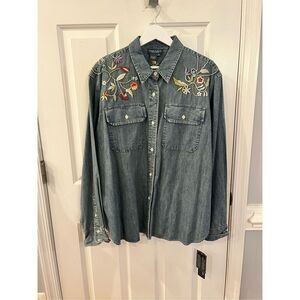 Lauren Jeans Co. Denim Floral Embroidered Button Down Shirt in vintage Wash sz 3