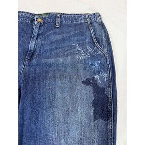 Lauren Jeans Co Embroidered Jean Straight Leg LRL | Dark Wash | Size 16