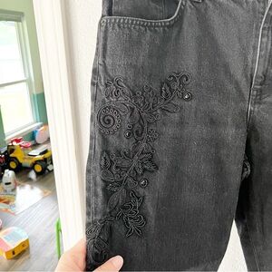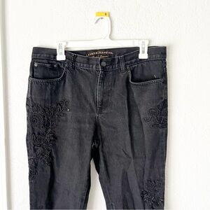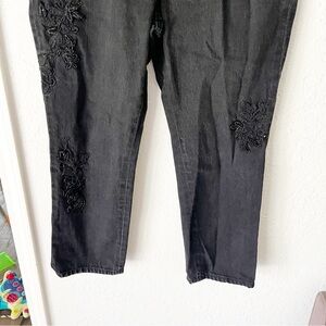 DETAILS: Lauran Jeans Co. jeans women's 12P, 12 petite. Black with decorative beading and embroidery. Cotton, machine wash.
