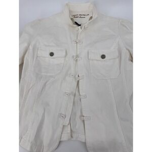 Lauren Jeans Co Lauren Denim Jacket Medium White Mandarin Collar Frog Button