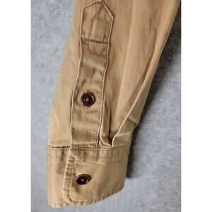 This Lauren Jeans Co. by Ralph Lauren safari dress offers timeless utility style with modern elegance. Crafted from 100% cotton in a versatile tan khaki shade, it features long sleeves with roll-tab cuffs, a button-down front, chest flap pockets, and a self-tie waist belt for a flattering fit. Perfect for casual wear, travel, or elevated safari-inspired looks.