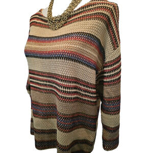 Lauren Jeans Co Ralph Lauren Brown Striped Oversized Layering Sweater Large L
