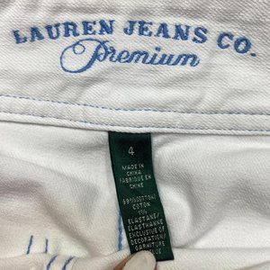 ConditionA: pre-owned, good. Size: 4, has a little stretch, buttons on the side, and pockets in the back/front. Measurements: waist: 29", length: 20", hips: 37."