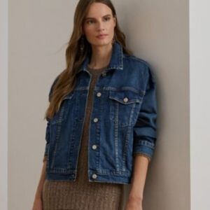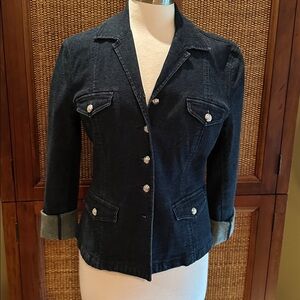 Lauren Jeans Co Ralph Lauren Jacket Denim Dark Wash Silver Buttons SzL
