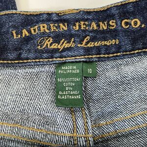 The Lauren Jeans Co Ralph Lauren Straight Leg Jeans in Dark Wash are stylish women's everyday wear size 10 jeans feature a classic straight leg fit with a regular waist size of 30 inches.