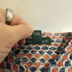 Add a touch of vintage charm to your wardrobe with this Lauren Jeans Co. Ralph Lauren button-up shirt. Featuring a striking red, blue, and white geometric print, this 100% cotton shirt is both stylish and comfortable. Perfect for casual outfits, it offers breathable fabric with a full button-up front, dual chest pockets, and button cuffs. This versatile piece is ideal for all seasons, and its timeless design ensures you’ll be wearing it for years to come.