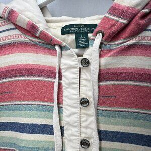 Lauren Jeans Co. Ralph Lauren Western Striped Cotton Long Sleeve Hoodie Strings 1/4 Button Up