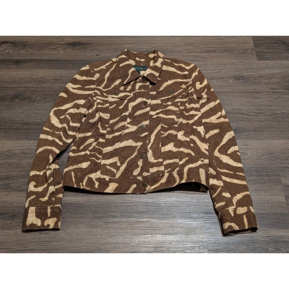 Lauren Jeans Co Ralph Lauren Zebra Print Denim Jacket Women's L Brown Beige