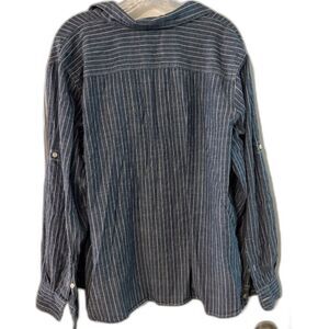 Lauren Jeans Co Shirt 2X Women's Blue White Pinstripe Lng Slve Business Casual