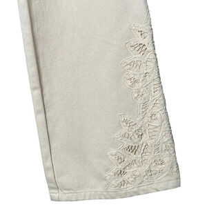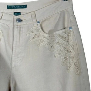 Lauren Jeans Co Size 6 Cream Denim Jeans Cropped Lace Equestrian Preppy Feminine