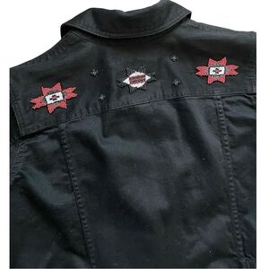 Lauren Jeans Co. Southwest Aztec Beaded Detail Black Jean Jacket 1X plus western