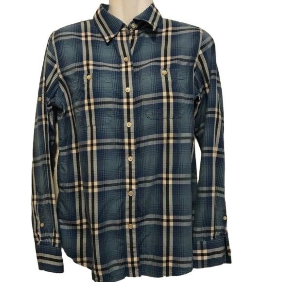 Lauren Jeans Company Blue Cotton Plaid Shirt Long Sleeve Button Up Size XS