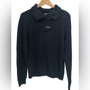 Lauren Jeans Company Ralph Lauren Cotton Shawl Collar Metal Closure Navy Sweater