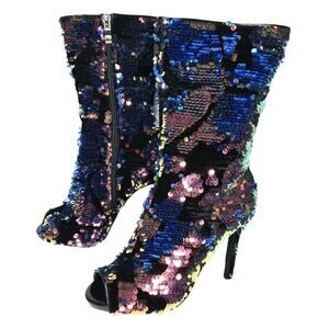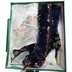 Lauren Lorraine Gal Blue Multi Sequin Peep Toe Ankle Boot Size 5.5 NIB
