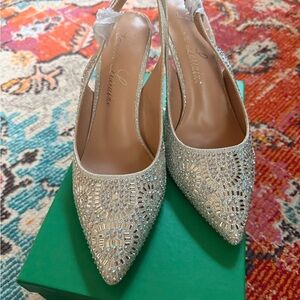 Dazzling silver heels with slingback design. Perfect for evening wear.