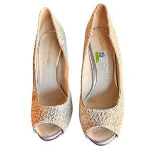 Lauren Lorraine Size 10 Elegant Pumps Glitter Lace Peep-Toe Heels Champagne