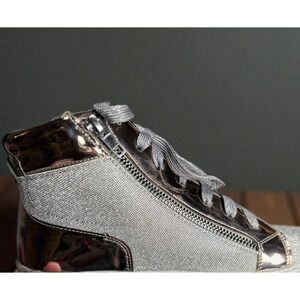 Lauren Lorraine Skippy Pewter Glitter High-Top Sneakers Women’s 7 | Glam Sparkle