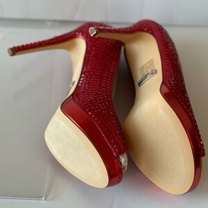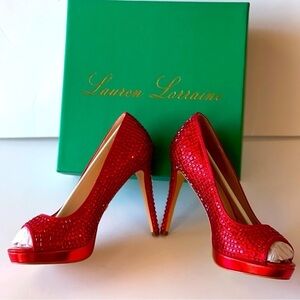 Lauren Lorraine Women's Red Platform Heels Rhinestone Prom Dress Heels, Sz 8.5M