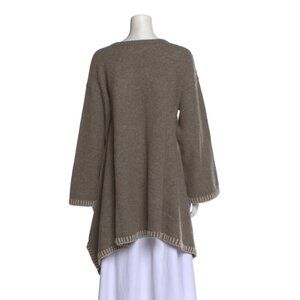 Gorgeous Lauren Manoogian alpaca blend gray sweater. Responsibly knitted by Peruvian artisans from a soft blend of baby alpaca and wool with blanket stitching to highlight the draped hem. Warm, luxurious, gorgeous drape. This color is "rock," a soft gray with cream stitching. I'm including pics of an alternate colorway to better see how it drapes.