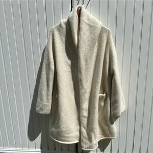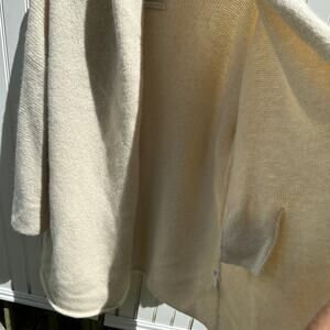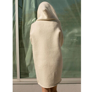 Gorgeous and versatile, Lauren Manoogian's Capote Coat is made from the softest alpaca fabric in a softly felted kit that feels like a cloud and warms you like a fireplace. I love the winter white color (called "White" - best represented in the hanger pics; not a true white - has a slight cream cast). I wore this twice (I need the petite size). It is in pristine pre-worn condition and has no stains or imperfections. One Size fits many. Hooded with front handwarmer pockets. 93% Alpaca / 7% Polyamide - Made in Peru