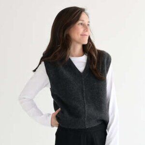 So comfy and soft! This is a great vest, in near perfect condition. Features a V-neckline, a center seam detail at front and back, and rib trim at hem.