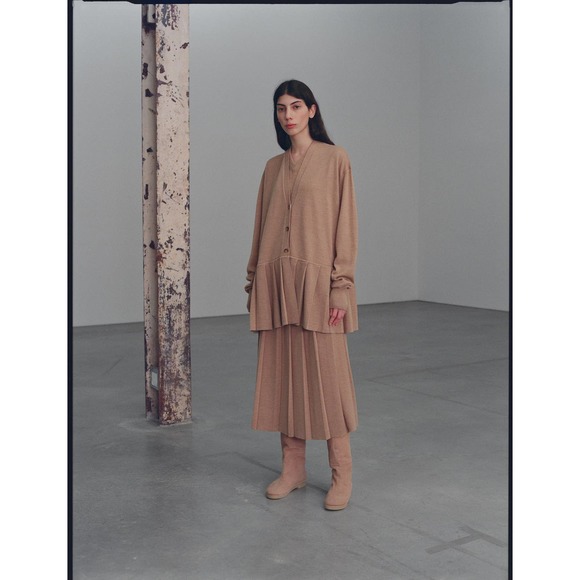 Conscious, slow fashion at it's best, this amazing cardigan will keep you warm and is incredibly versatile. This oversized cardigan is lovingly made in Peru from a lightweight Wool/Baby Alpaca blend that is incredibly soft. The tight, fine knit makes this ideal not only for staying cozy while gazing at the night sky also but works great dressed up or down. Swingy pleats at the bottom hem make this super special. This cardigan pairs perfectly with the matching Pleat Skirt in Camel (also available). Designed to have a relaxed, boxy fit, the Pleat Cardigan drapes beautifully and is a staple piece you'll have for many years to come. I can't say enough wonderful things about this piece!