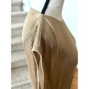 Lauren Manoogian Tan Ribbed Short Sleeve Column Lettuce Hem Tunic Dress