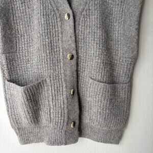 Lauren Manoogian waffle knit alpaca blend sleeveless cardigan sweater vest in gray. Button front closure with a rib knit hem. Patch pockets at front. Size 1. fits a brand size small.