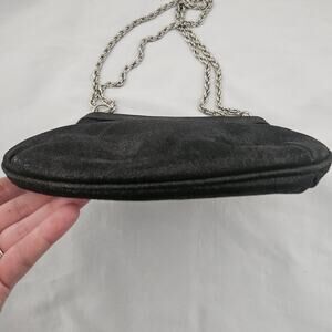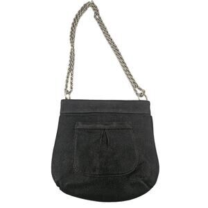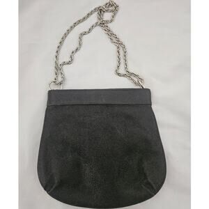 Lauren Merkin Black Leather Chain Strap Shoulder Bag Purse Glam Minimalist Basic