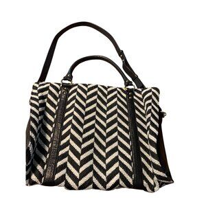 Lauren Merkin Black & White Boho Old Money Chevron Fabric Handbag With Adjustabl