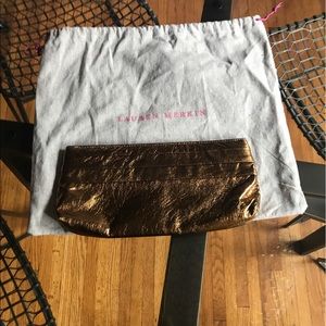 Lauren Merkin bronze metallic leather clutch. Brand new with tag attached. Bought at a sample sale. The interior is lined with the beautiful signature Lauren Merkin striped metallic fabric. Dimensions: 11" W x 5.5" H. The last picture shows the color best. Top rated seller. Bundle discount available.