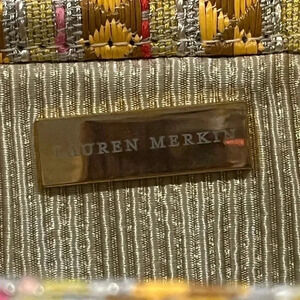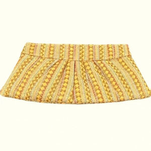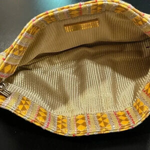Lauren Merkin Geometric Woven Yellow Gold Multicolored Boho Festival Clutch Purse Bag