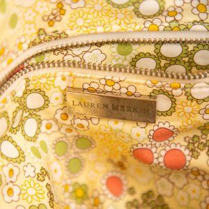 Beautiful large champagne color Lauren Merkin bag. 15L x 11H x4D. One thick short strap. Floral lining. Inner zip pocket. Bag is in excellent condition with a few hard to see spots (pictured).