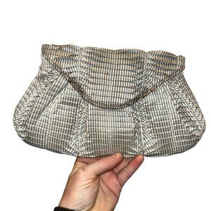 Lauren Merkin lovely striped ruched fabric clutch bag does have some staining if you closely first photo