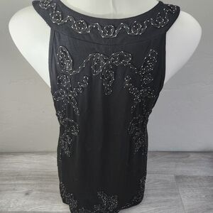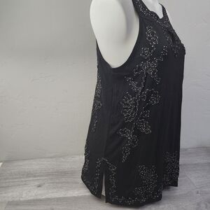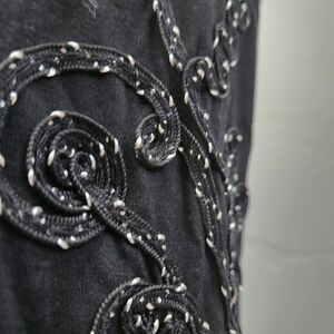 Lauren Michelle Black Top Size L Embroidered Floral Swirl Keyhole Boat Neckline