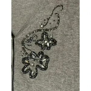 Beautiful Laruen Michelle gray cardigan with intricate beading. Sleeves are 3/4 length. Size large. Excellent condition.