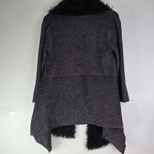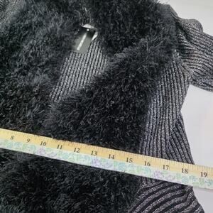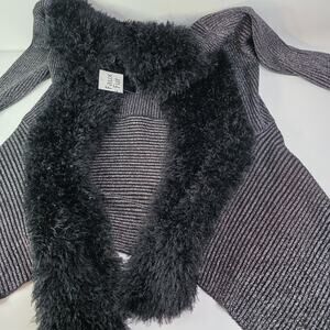 Lauren Michelle Silver Black Sparkly Fuzzy Trim Cardigan Size Medium Party