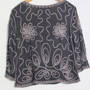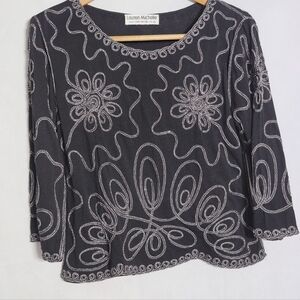 Lauren Michelle Sz M Vintage Black Embroidered Top
