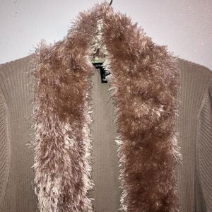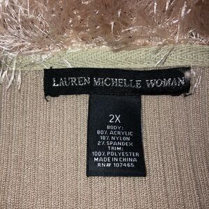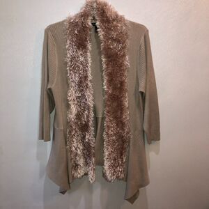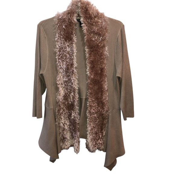 Lauren Michelle Woman 2X Beige Taupe Faux Fur Open Front Cardigan Sweater Duster