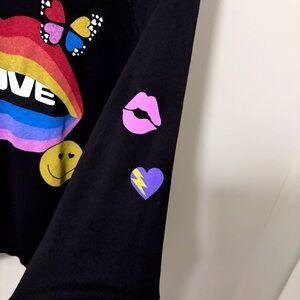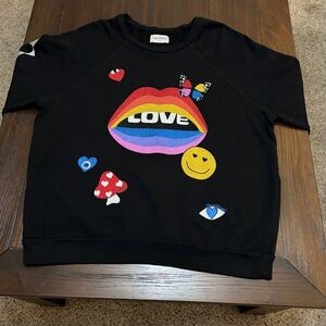 Lauren Moshi Anela Sweatshirt Love Collage Onyx Size Small