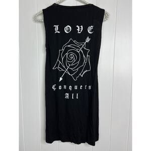 Lauren Moshi Black Tunic Length Tank "Love Conquers All" Graphic Size XS
