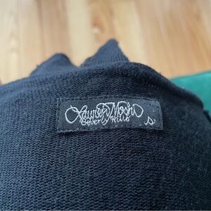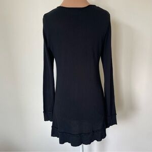 Lauren Moshi Chain Skull Graphic Long Sleeve Black Cotton Modal V-Neck Top Sz S