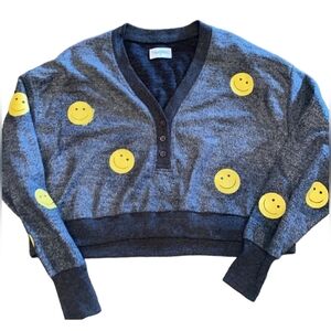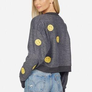 Lauren Moshi Kathryn All Over Yellow Smiley Crop Sweater