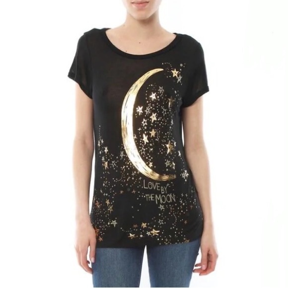 Gently used in excellent condition! Lauren Moshi Black “Love By The Moon” Tunic Top. Size Small. Metallic moon and stars on lightweight black micro modal top.