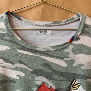 Lauren Moshi | Simone Love More Rose Camo Crew Neck Pullover Sweatshirt Size L
